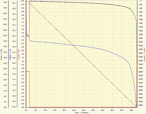 Sodobni litij-železo-fosfatni akumulator z nazivno napetostjo 12,8 V in nazivno kapaciteto 6 Ah ima 200 mm dolg silikonski kabel z XT60 prikjučkom in 4S JST XH balanserskim priključkom.
