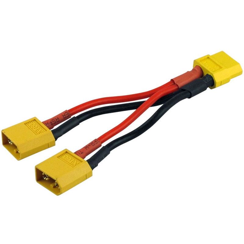 Za možnost povezave dveh paketov z XT60 priključki vzporedno (xS2P) za prazenjenje ali polnjenje. Uporabljen je mehak silikonski kabel preseka 2,5 mm2.