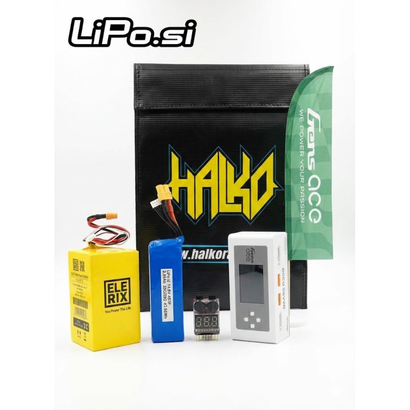 Varnostni paket: Vključena LiPo Safe vreča za varno polnjenje in transport, nizkonapetostni alarm (piskač) za nadzor celic ter Gens Ace zastavica za boljšo vidljivost na vzletišču.