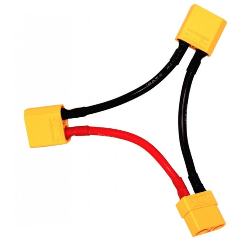 Serijski priključek s silikonskimi kabli in XT90 priključki, npr. 2S+2S za 4S, 3S+3S za 6S, ipd.